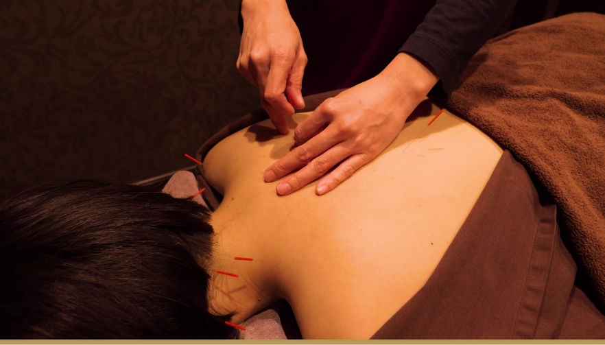 鍼灸×指圧マッサージで全身バランスを整え、その日のお悩みに合わせて上半身または下半身を集中ケア。